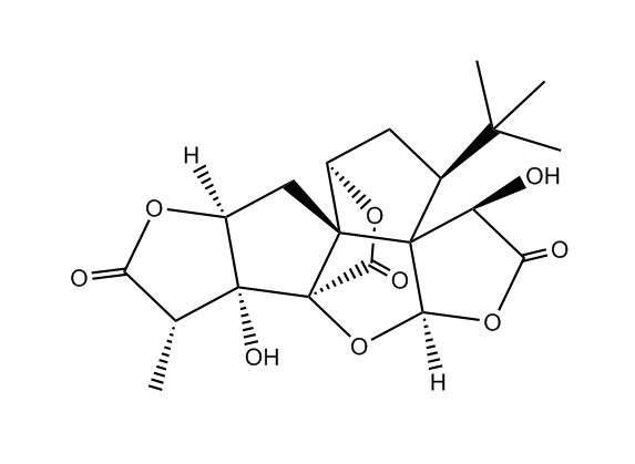 [1]. Wada, K., et al., Isolation of bilobalide and ginkgolide A from Ginkgo biloba L. shorten the sleeping time induced in mice by anesthetics. Biol Pharm Bull, 1993. 16(2): p. 210-2.